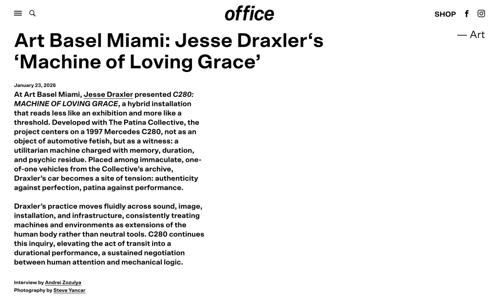 Office Magazine Coverage of C280: Machine of Loving Grace 01/24/2026 EXHIBITIONINTERVIEWPRESS READ HERE